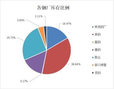 从各无缝厚壁无缝钢管厂家比例来看,承钢重回大哥位置,敬业次之仍有一定距离,唐钢暂居第三,其他无缝厚壁无缝钢管厂家紧随其后,2672凌钢分列五六几乎并驾齐驱,宣钢存量已经很小。