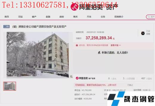 近日,阿里拍卖平台发布通钢企业名下房屋建筑物、构筑物及其他辅助设施等资产的拍卖信息。本次竞拍时间为1月20日是继1月1日后的第二次拍卖,起拍价格也由之前的4657.28万元降至3725.82万元。