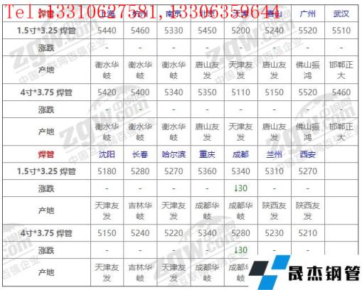 全国15个主要市场1.5寸*3.25 焊管平均价格5344元/吨,较上个交易日下调2元/吨。
