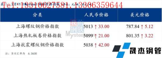 分地区方面,上海螺纹钢价格指数5013,上涨33.0;上海热轧板卷价格指数5099,上涨21.0。(单位:元/吨)