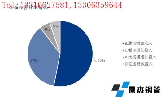 本次调研样本企业中未来一段时间计划增加投资的企业占比58%;暂不增加投资的企业占比37%;计划缩减投资的占比5%。