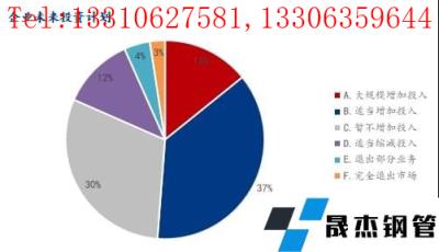 对于企业未来投资计划,参与调研企业中表示大规模增加投入占比14.19%,适当增加投入占比37.03%,暂不增加投入占比30.38%,适当缩减投入占比11.75%,退出部分业务占比4.21%,完全退出市场占比2.44%。