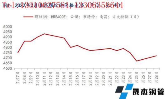 整体来看,2月份江西地区建筑厚壁无缝钢管价格行情整体呈现先扬后抑走势。截止2月28日,南昌市场方大特钢螺纹钢HRB400EФ18mm价格为4720元/吨,月环比1月末上涨50元/吨,较去年同期持平。具体来看,2月初受春节小长假影响,江西市场全面休市,价格整体平稳过渡。小长假过后,宏观数据利好频现,强预期的带动下,无缝厚壁钢管厂家积极推涨,期螺大幅拉涨,市场迎来开门红行情。后半月由于需求释放不及预期,叠加国家对于大宗商品保供稳价政策影响,现货价格冲高回落。