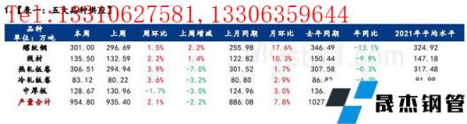 消费方面,本周五大品种周消费量降幅4%;其中建材环比降幅6.9%,板材环比降幅1.3%。