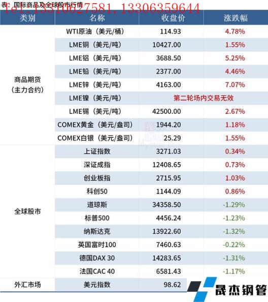 免责声明:本网站(山东聊城晟杰无缝钢管厂www.qlsteels.com)刊载的“2022年03月24日早读:黑色期货夜盘全线上涨,国际原油金属期价大涨”等均源于网络,版权归原作者所有,且仅代表原作者观点,本文所载信息仅供参考。转载仅为学习与交流之目的,如无意中侵犯您的合法权益,请及时联系删除。本网站刊登此篇文章并不意味着本站赞同其观点或证实其内容的真实性,我们不对其科学性、严肃性等作任何形式的保证。如果侵犯了您的版权,请尽快联系我们予以撤销,谢谢合作!