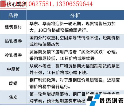 国内疫情反复叠加南方迎强降雨天气,需求预期不佳。同时,由于无缝厚壁钢管厂家效益较低,对铁矿石、焦炭等原燃料价格打压愿意增强,厚壁无缝钢管成本支撑下移。短期来看,钢市基本面偏弱,钢价或震荡趋弱。