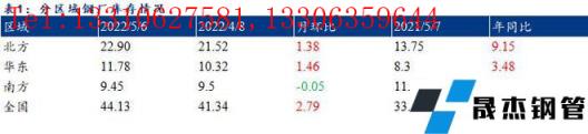 接下来再比较区域库存的表现情况,从表1可以对比得出。目前北方、华东区域增库较为明显,分别高于同期9.15万吨、3.48万吨。主要是自3月份以来,北方、华东区域受疫情困扰,物流严重受阻,而无缝厚壁钢管厂家产能利用率依旧保持高位,在产量不减的现状下,而厂库无法外移,导致厂库持续累积。据了解,5月7日,营口市再次发布新冠肺炎疫情防控指挥部消息,结合当前严峻的疫情形势,营口市疫情防控指挥部决定提级管理,从即日起:实行全天24小时管制,交通信号灯全红。解除时间另行通知,其他事项不变。这也就意味着北方区域的物流短期依旧受制。