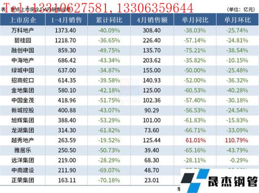 免责声明:本网站(山东聊城晟杰无缝钢管厂www.qlsteels.com)刊载的“16家重点房企4月销售同比降幅扩大,楼市“小阳春”未现”等均源于网络,版权归原作者所有,且仅代表原作者观点,本文所载信息仅供参考。转载仅为学习与交流之目的,如无意中侵犯您的合法权益,请及时联系删除。本网站刊登此篇文章并不意味着本站赞同其观点或证实其内容的真实性,我们不对其科学性、严肃性等作任何形式的保证。如果侵犯了您的版权,请尽快联系我们予以撤销,谢谢合作!