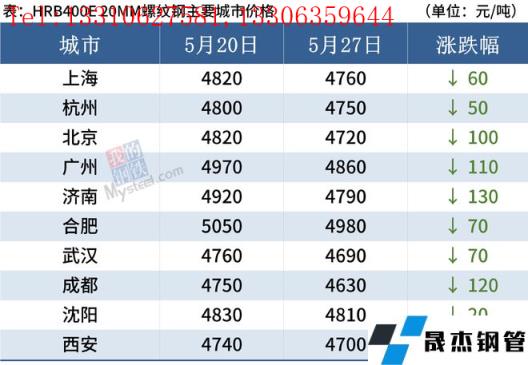 据监测,截至5月27日,全国主要城市20mm三级抗震螺纹钢均价4765元/吨,较5月20日下跌84元/吨;8.0mmHPB300高线均价5023/吨,较5月20日下跌78元/吨。