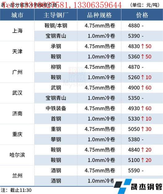 ◎天津:6日早盘冷轧市场价格上调50元/吨,1.0天铁5370元/吨;首钢5360元/吨,唐钢5330元/吨,成交一般。(单位:元/吨)