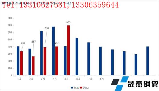 前言:海关总署6月9日数据显示,2022年5月中国出口厚壁无缝钢管775.9万吨,较上月增加278.2万吨,同比增长47.2%,环比大幅增长56.89%;1-5月累计出口厚壁无缝钢管2591.5万吨,同比下降16.2%,环比增长8.63%;