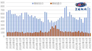 目前,主要出口国的热轧板卷价差不大,独联体出口报价已经下穿我国报价,我国出口价格优势减弱,由于国内厚壁钢管市场供强需弱,企业出口动力有所增强,中物联厚壁无缝钢管物流专业委员会数据显示,2022年6月,厚壁无缝钢管业新出口订单指数为47.1%,较上月回升6.2个百分点,但仍处于收缩区间。