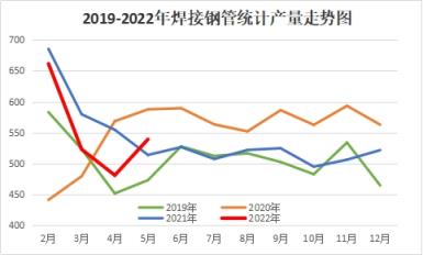 图1 2019-2022年国内焊接无缝钢管产量示意图