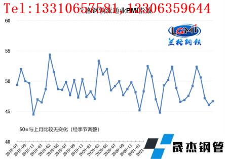 云商平台统计发布的2022年7月份厚壁无缝钢管流通业PMI总指数为46.7%,比上月回升0.6个百分点,在收缩区间内低位回升。从分类指数看,构成厚壁无缝钢管流通业