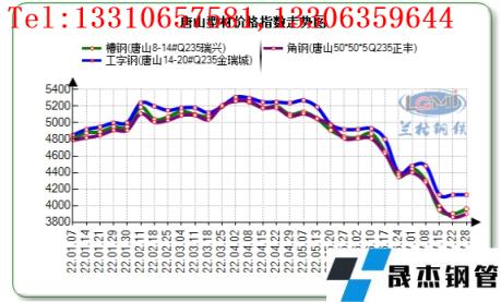 mso-font-kerning:0.0000pt;background:rgb(255,255,255);mso-shading:rgb(255,255,255);">7月份型材价格走宽幅下行行情,唐山型材价格月度降幅400-500元之间,年内振幅1200-1400元之间。7月28日槽钢(唐山8-14#Q235瑞兴)报价3960元,年内价格区间5280-3900元,振幅1320元,工字钢(唐山14-20#Q235金瑞城)报价4130元,年内价格区间5310-4130元,振幅1180元。角钢(唐山50*50*5Q235正丰)报价3900元,年内价格区间5260-3860元,振幅1400元。年内高位在7月份,目前处于年内低位。mso-font-kerning:0.0000pt;background:rgb(255,255,255);mso-shading:rgb(255,255,255);">